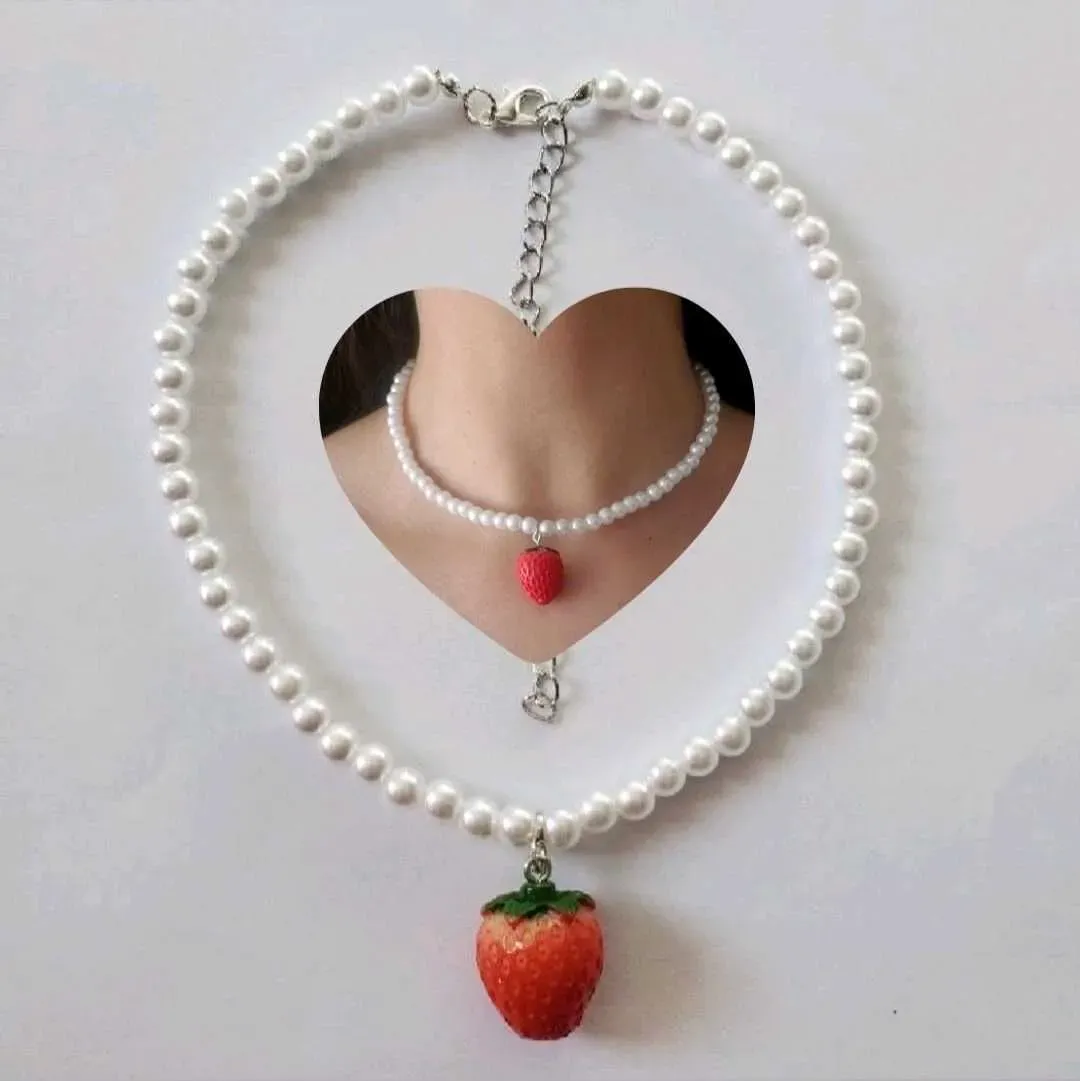 ✨️Precioso choker de frutilla🍓, contiene perlas blancas y un dije de frutilla creando un accesorio único y realmente hermoso✨️
