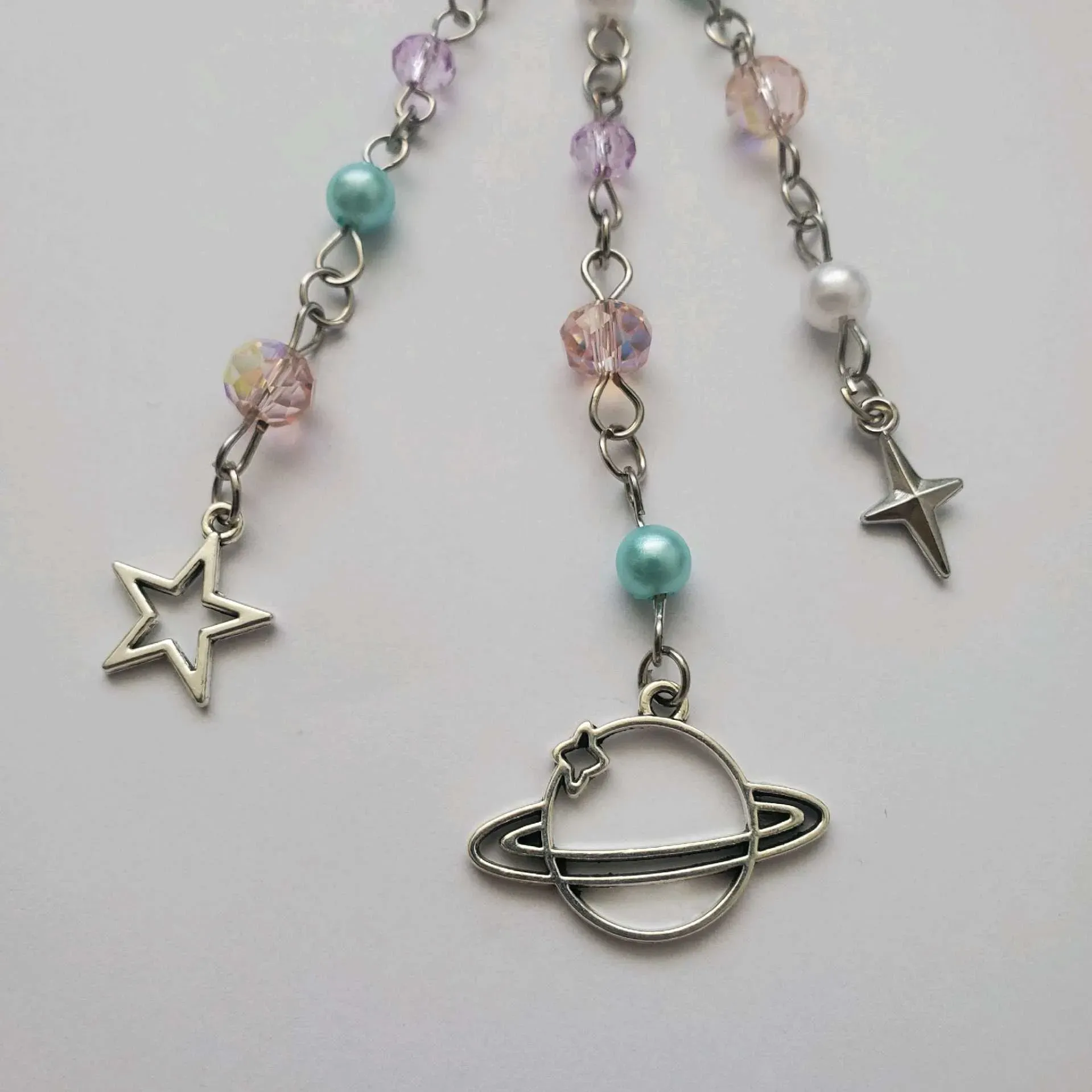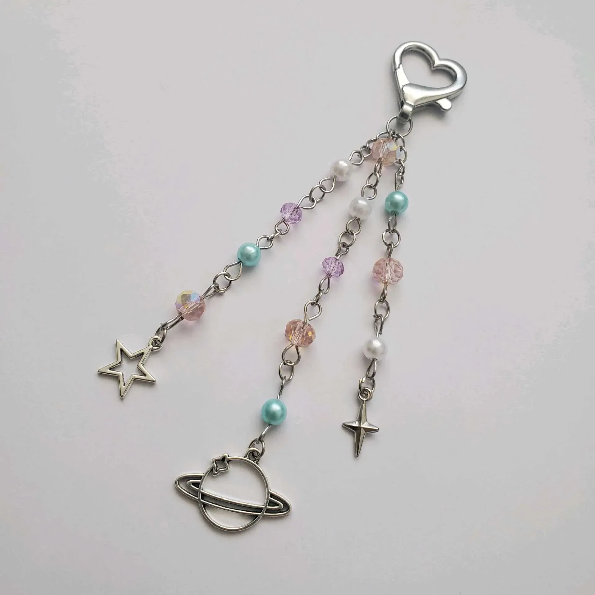 ✨️Precioso llavero de Júpiter, contiene perlas de distintos colores combinados con dijes de estrella, brillo y júpiter creando un accesorio único y realmente hermoso💗