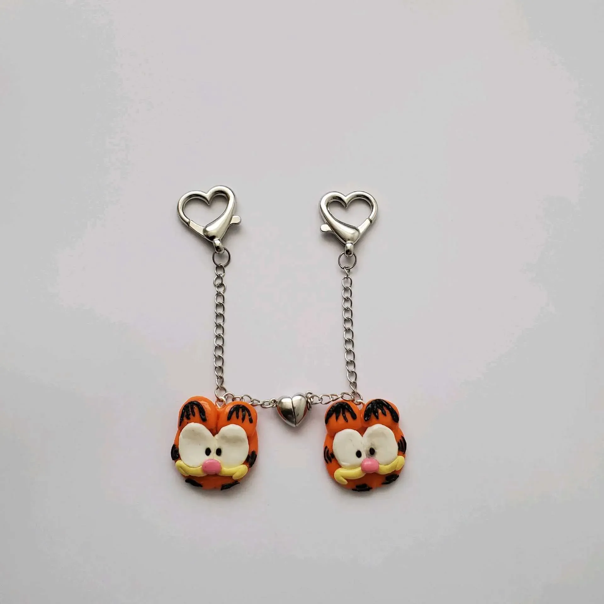 ✨️Preciosos llaveros de Garfield, perfectos para compartir con ese alguien especial💘 contiene dijes de Garfield, creados con porcelana fría, combinados con imanes de corazón creando un accesorio único y realmente hermoso💗