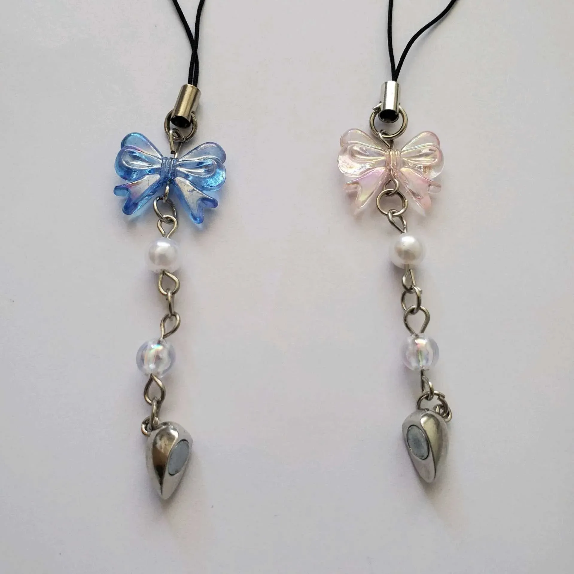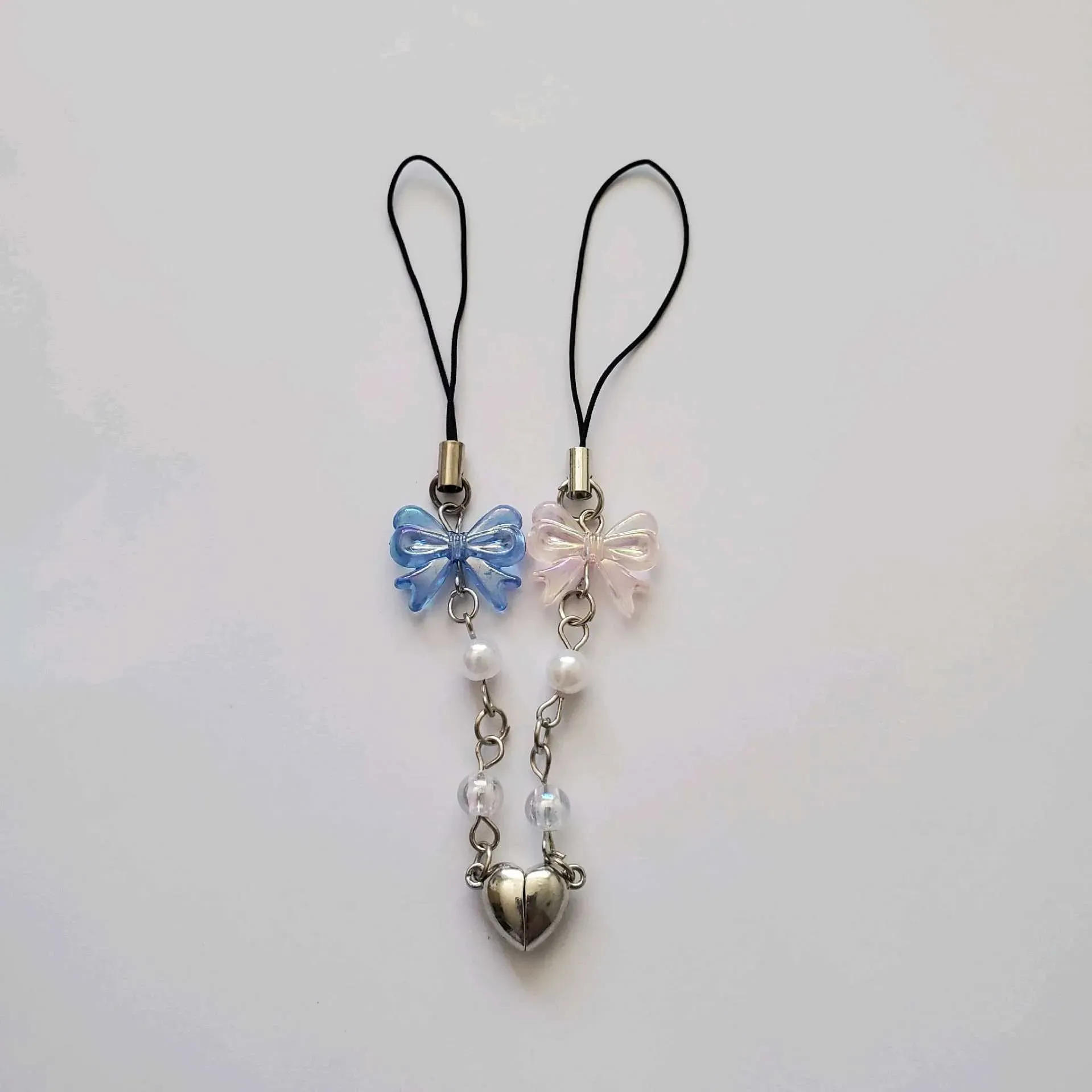 ✨️Preciosos phone strap para compartir, contiene perlas de distintos colores combinado con dijes de cinta y un corazon de iman creando un accesorio único y realmente hermoso💗