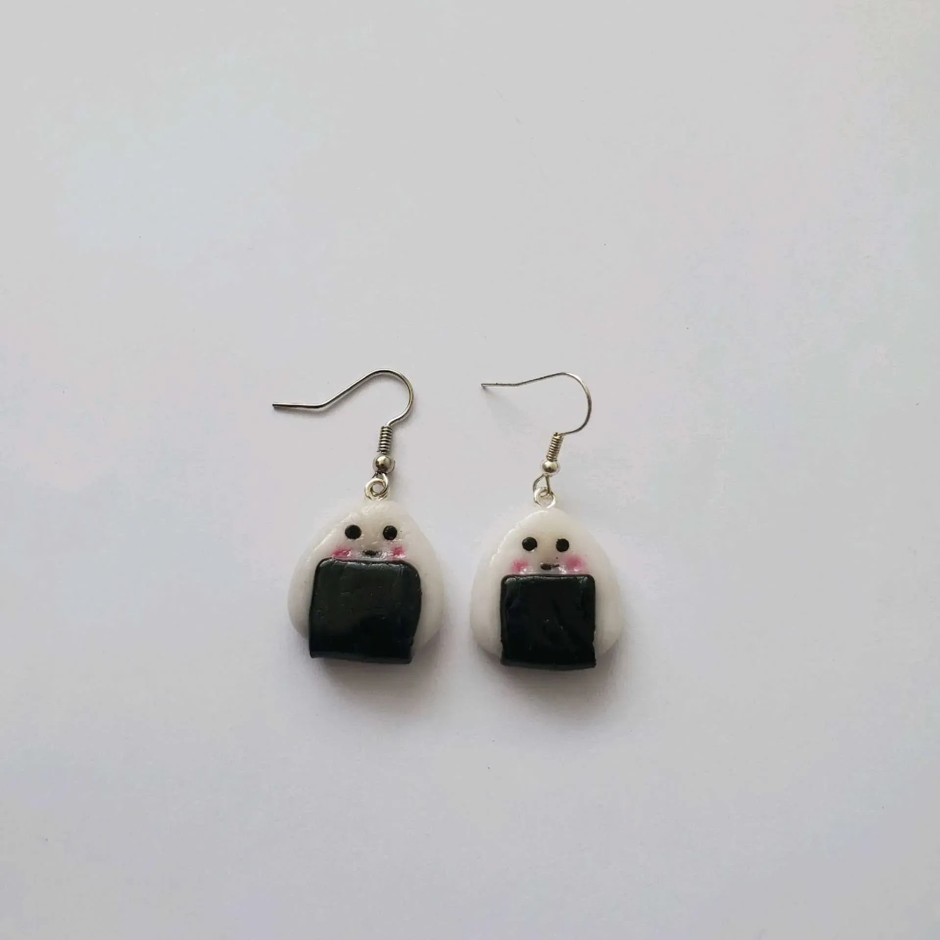 💖Preciosos aritos de onigiri, son creados 100% a mano con porcelana fría, perfectos para darles un toque único a tus oufits✨️ perfectos para regalar/te...