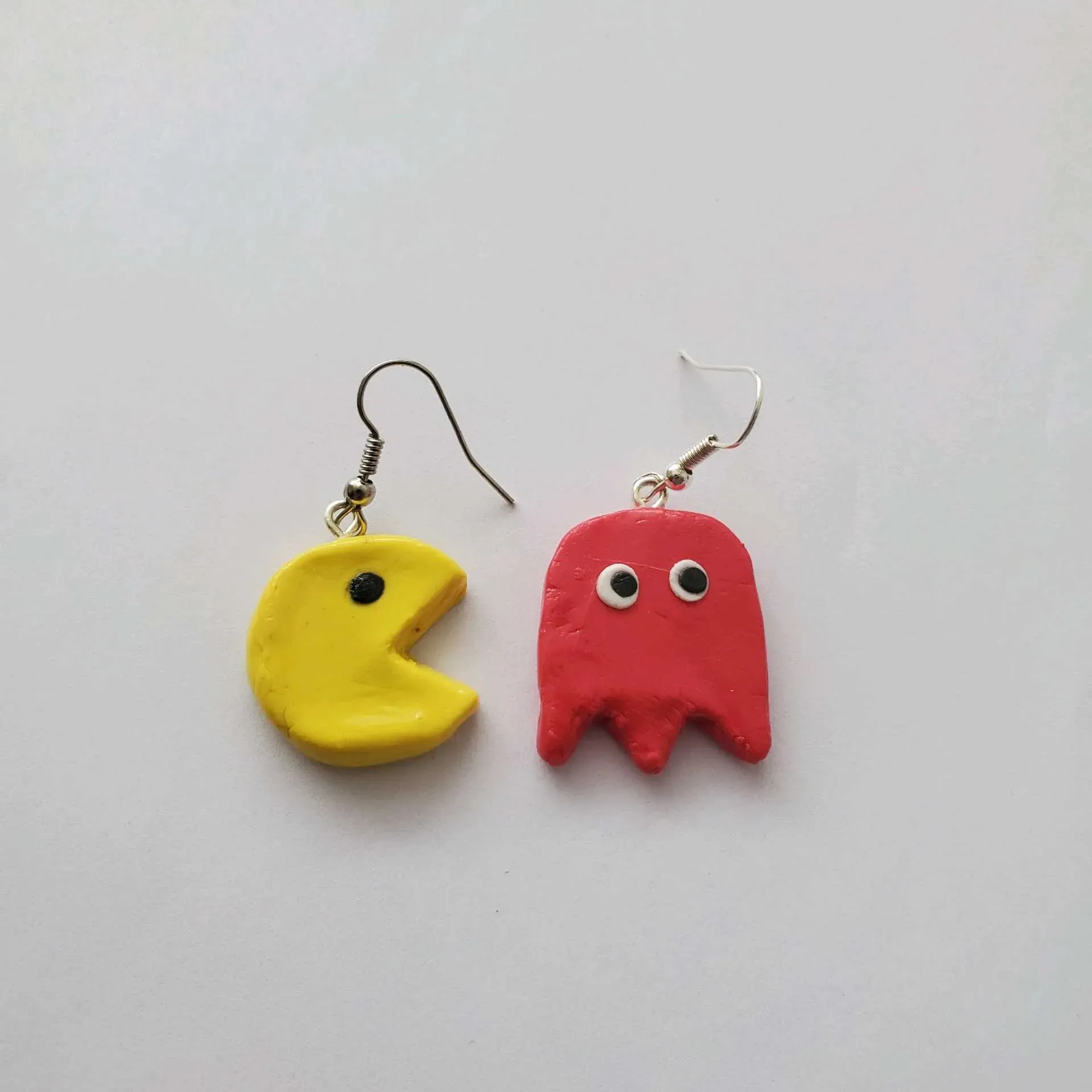💖Preciosos aritos de Pac-Man, son creados 100% a mano con porcelana fría, perfectos para fans y para darles un toque único a tus oufits✨️ perfectos para regalar/te...