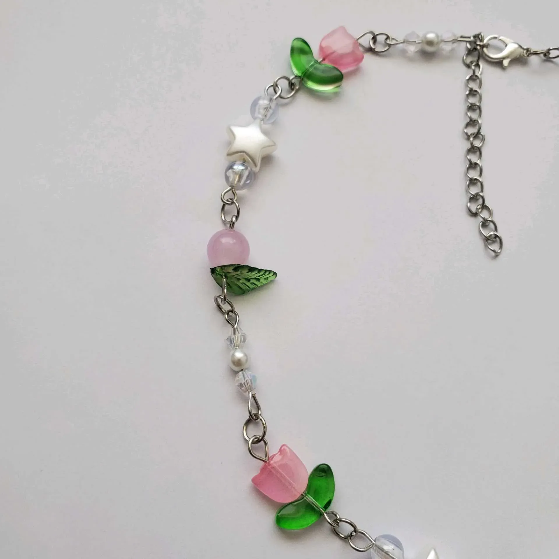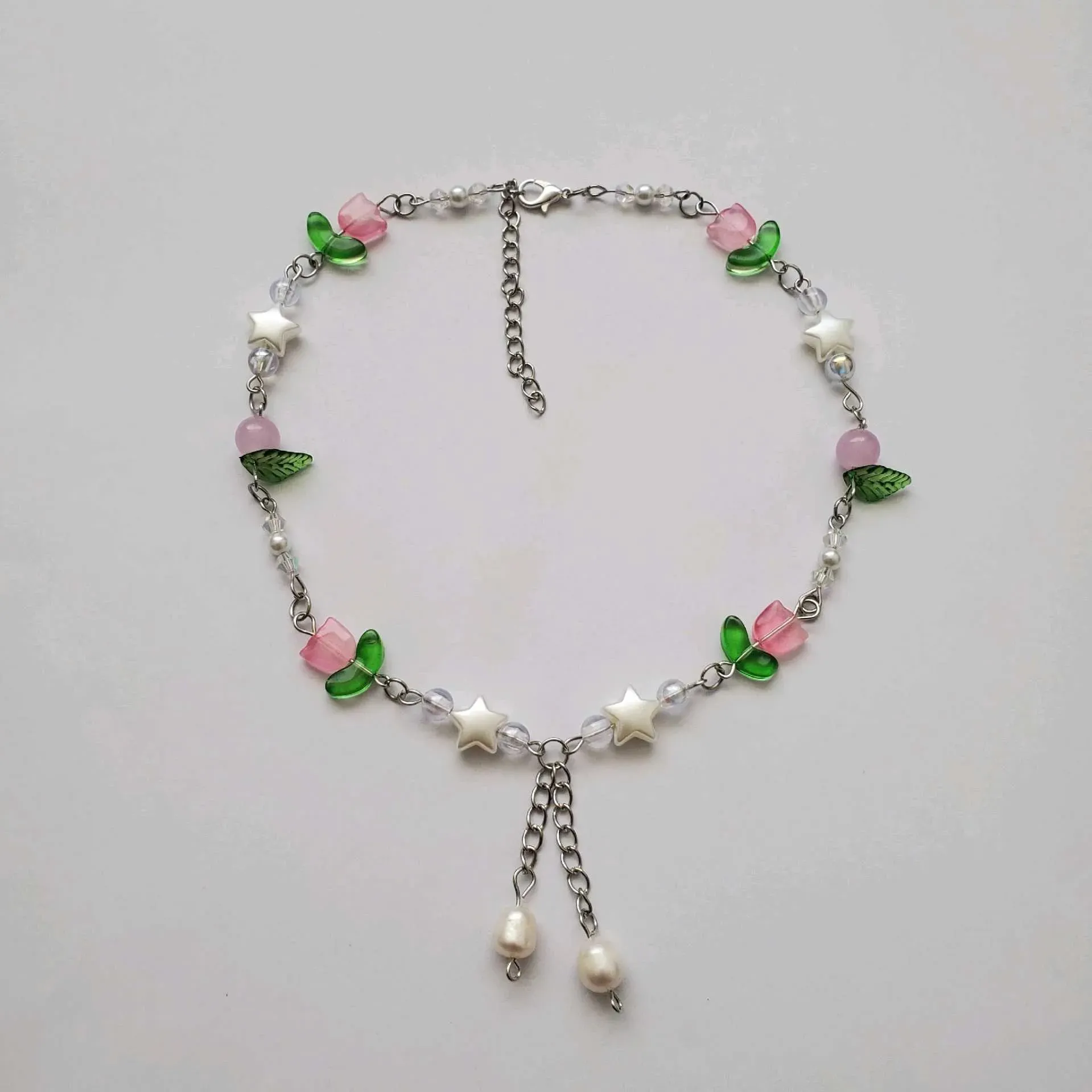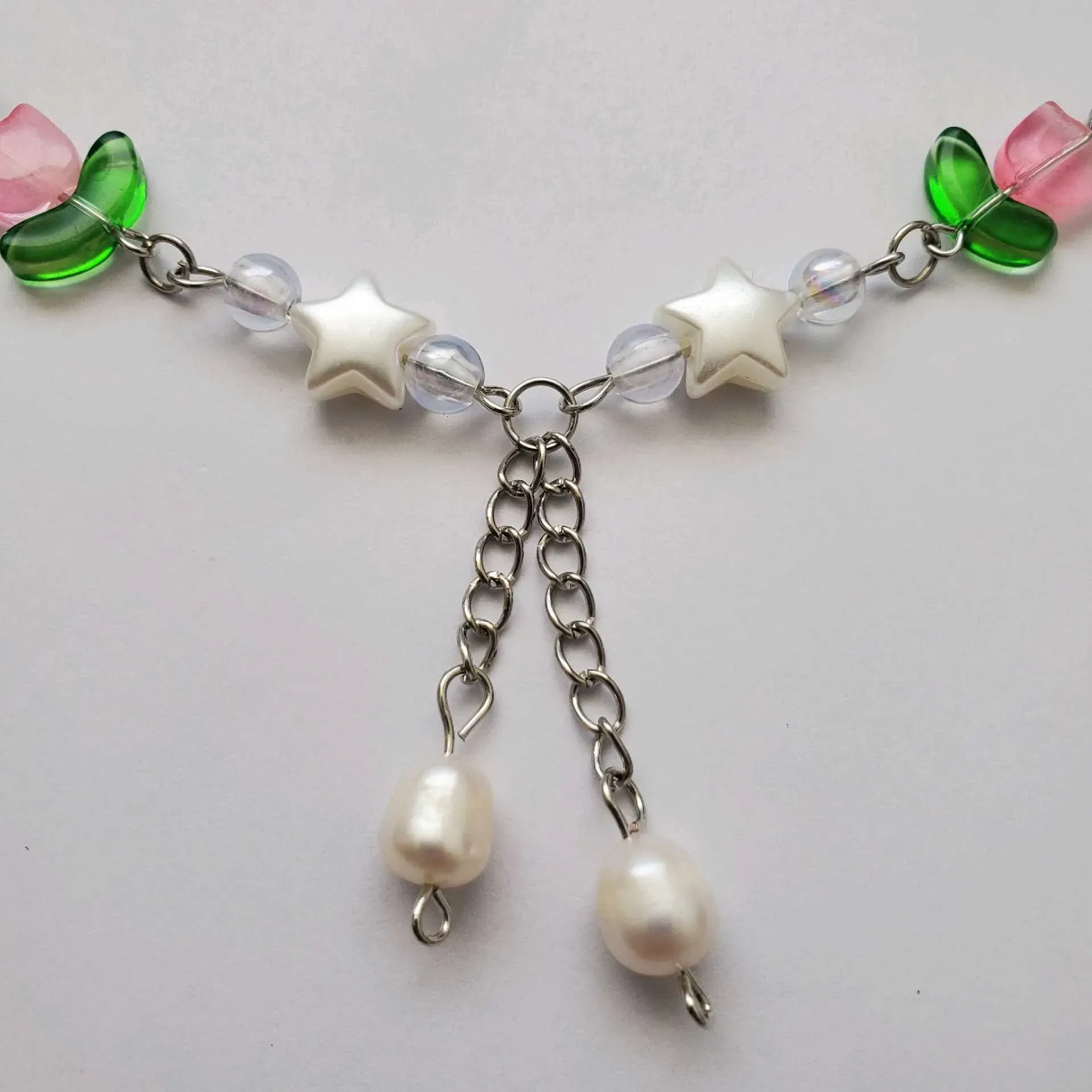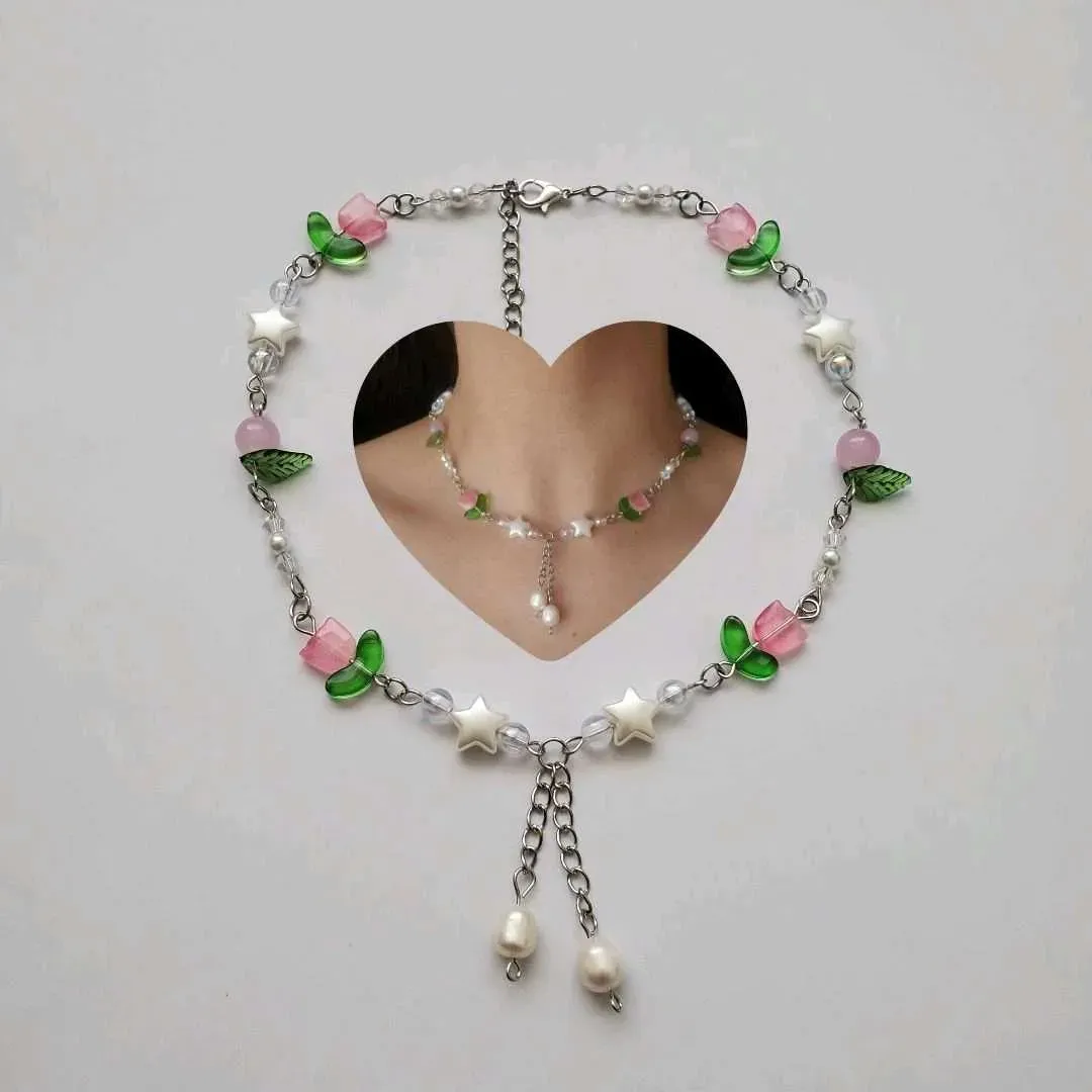 ✨️Precioso choker frutal, contiene perlas de distintos tonos combinados con dijes de estrellas y tulipanes, el dije central son cadenitas con perlas de río inspirados en las guindas, esta combinacion en conjunto crean un accesorio único y realmente hermoso✨️