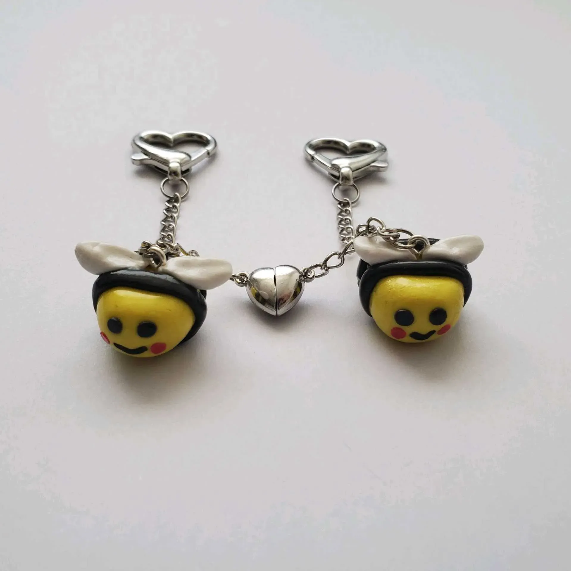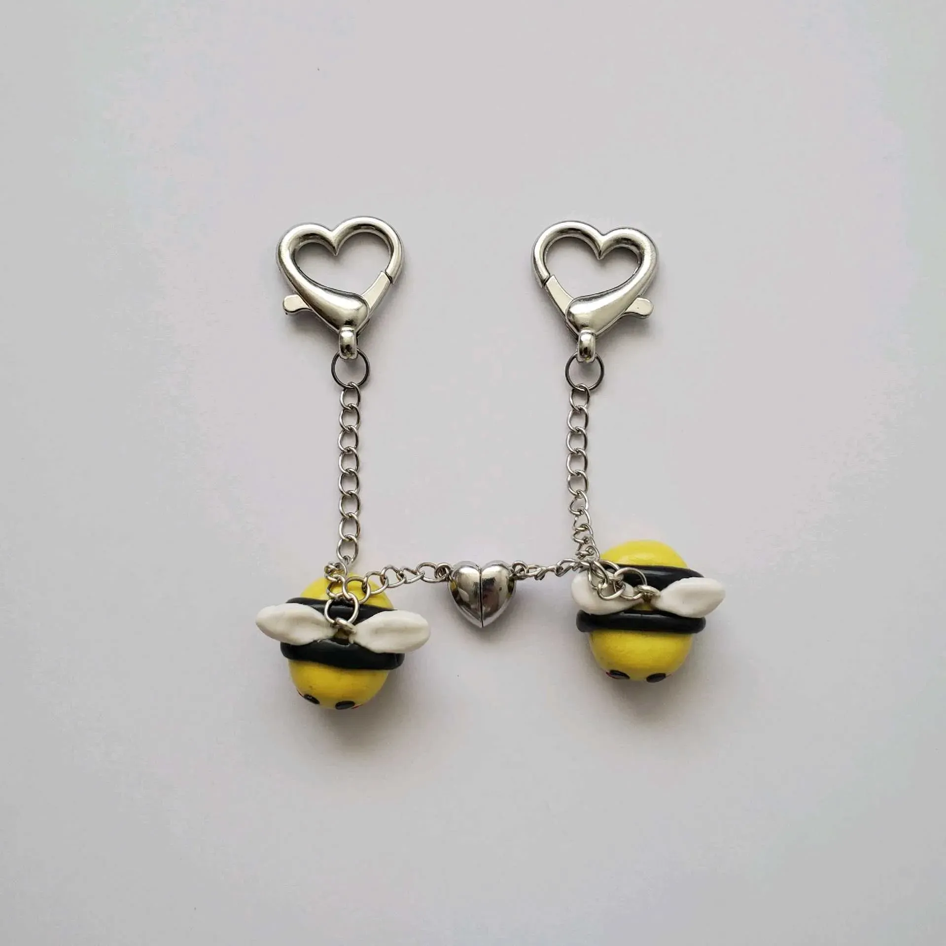 ✨️Preciosos llaveros de abejita, perfectos para compartir con ese alguien especial💘 contiene dijes de abejitas, creados con porcelana fría, combinados con imanes de corazón creando un accesorio único y realmente hermoso💗