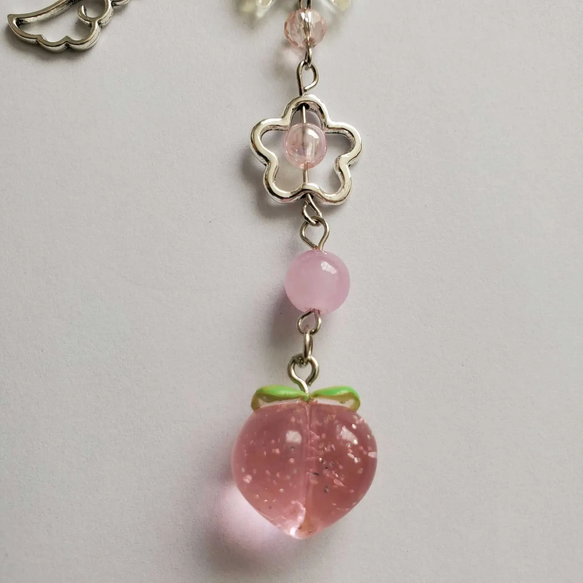 ✨️Precioso phone strap de durazno, contiene perlas de distintos colores combinado con un dije de cinta, nube y durazno creando un accesorio único y realmente hermoso💗