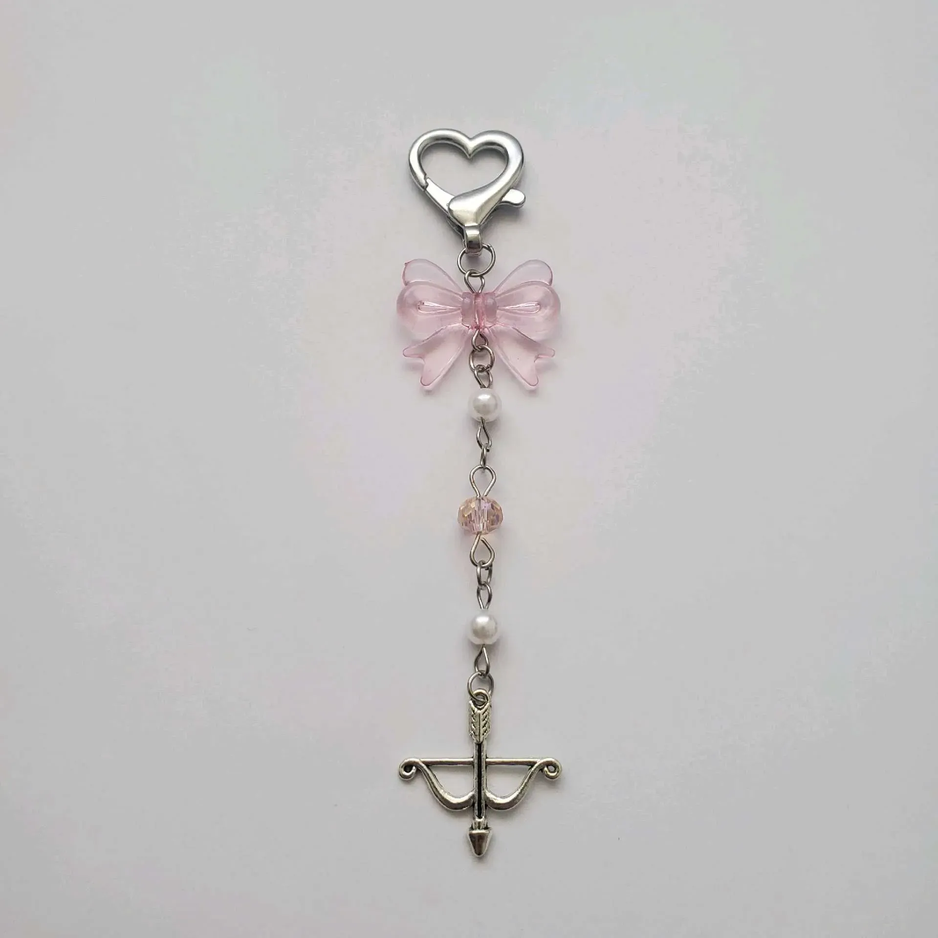 ✨️Precioso llavero, contiene perlas de distintos colores combinado con un dije de cinta y arco con flecha creando un accesorio único y realmente hermoso💗