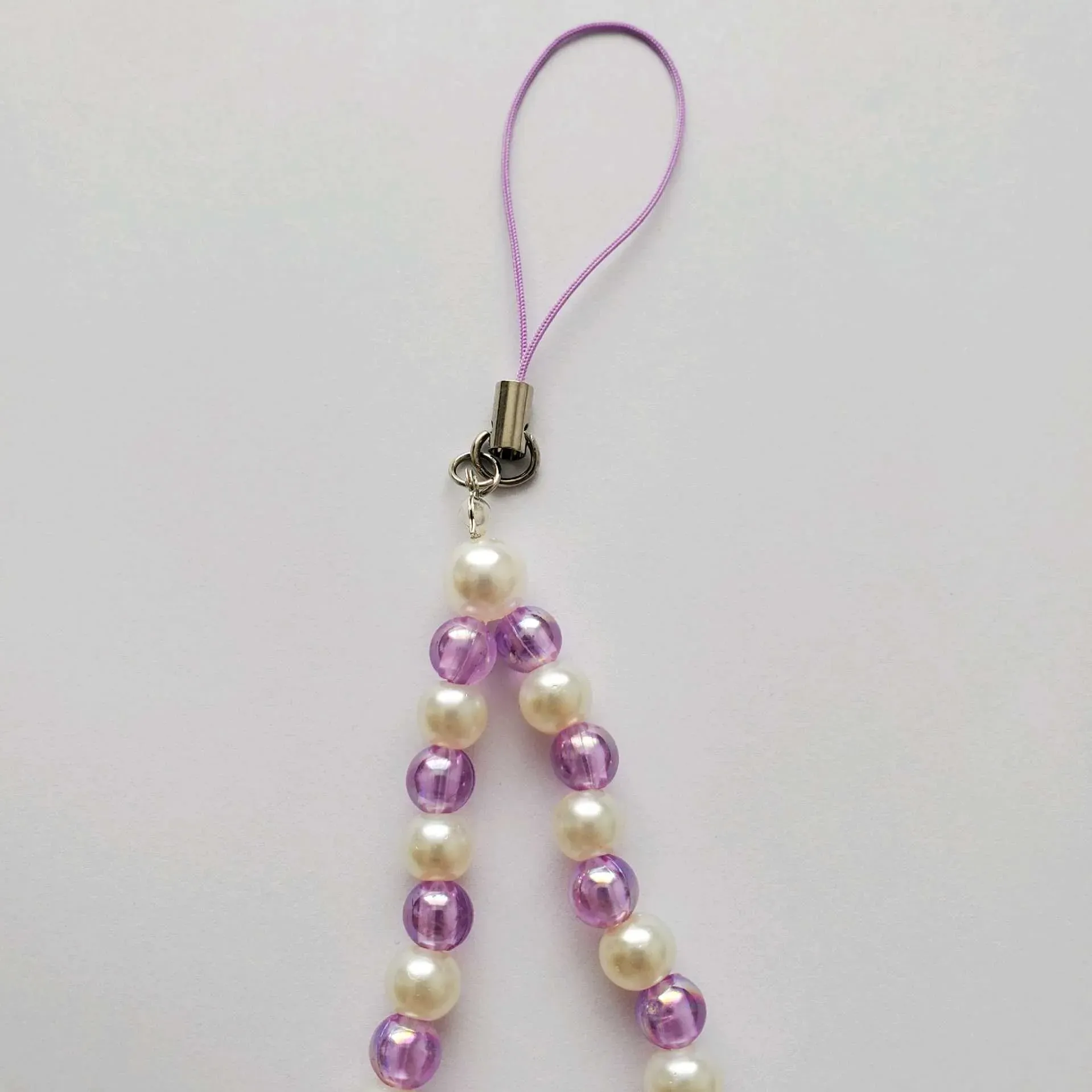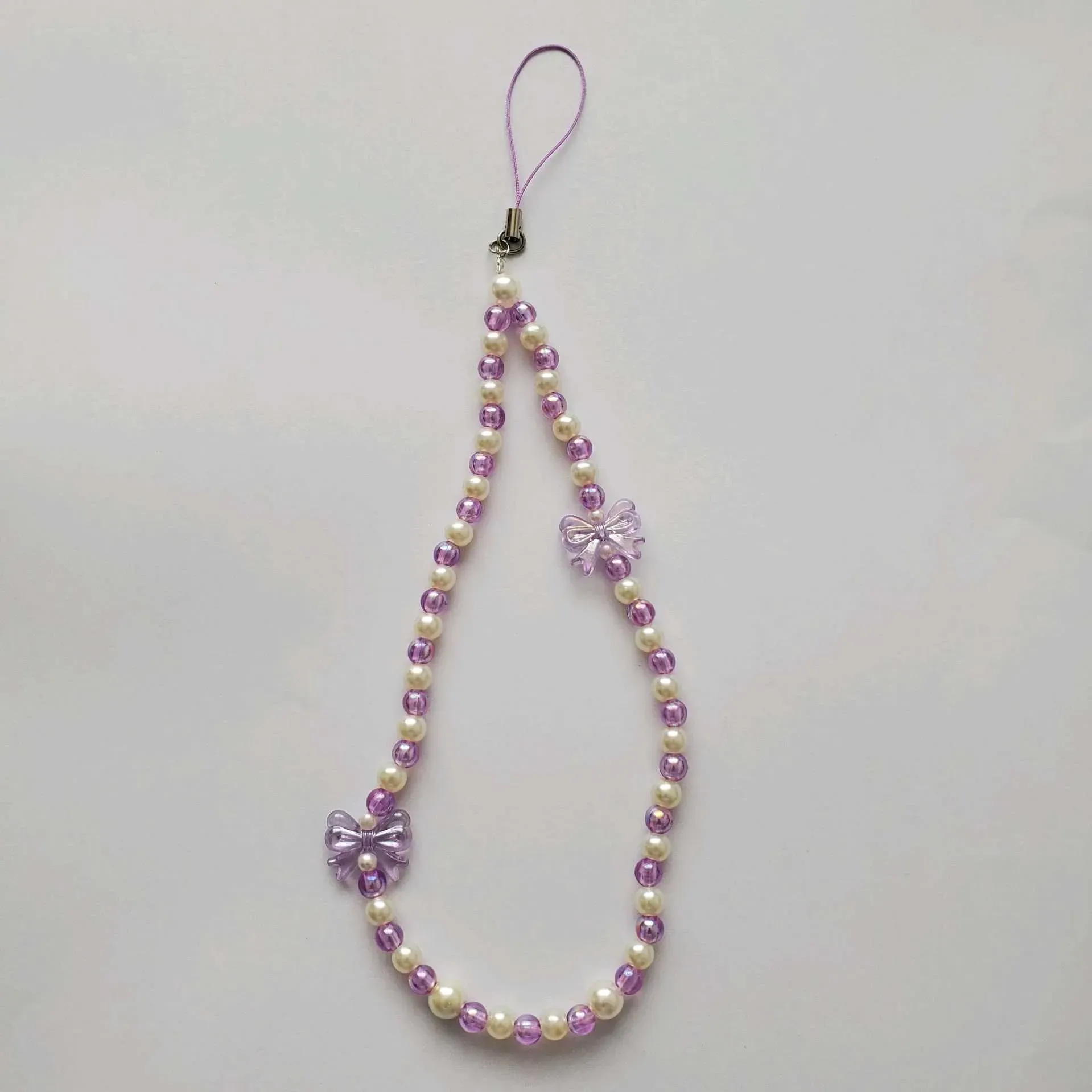 🎀Precioso phone strap largo, contiene perlas amarillas y moradas combinadas con cintas moradas creando un accesorio único y realmente hermoso✨️
