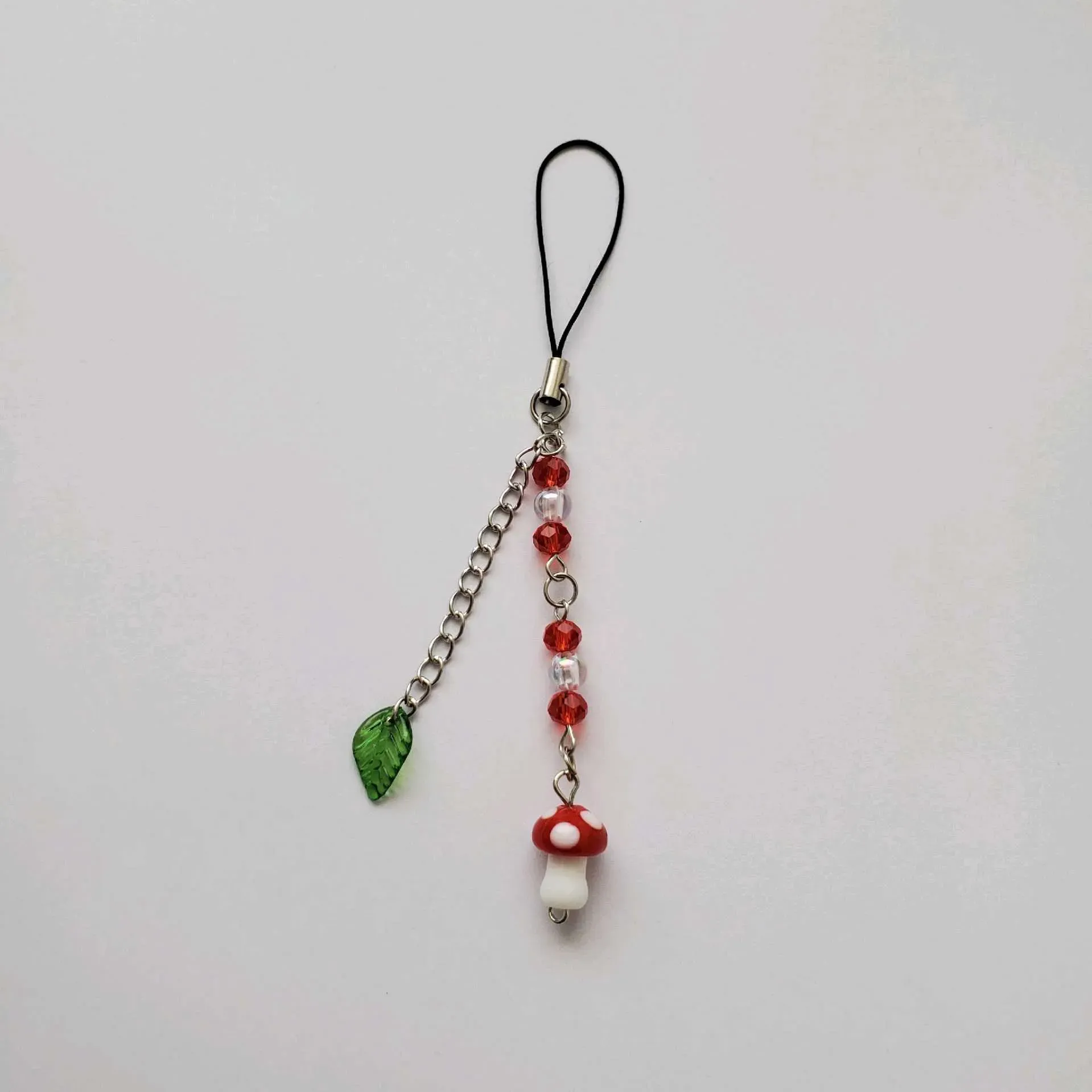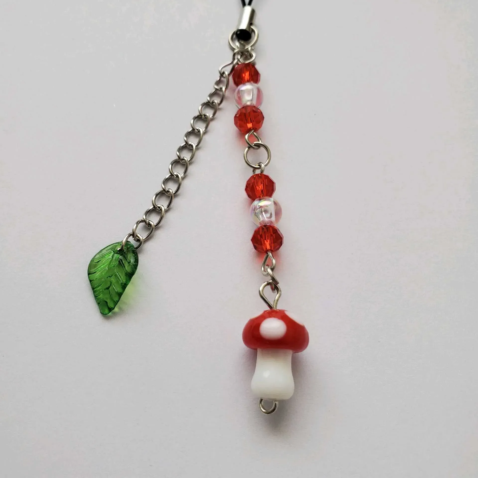 ✨️Precioso phone strap de seta🍄, contiene perlas blancas con piedras rojas acompañado con una hoja🍃combinado con un dije de seta creando un accesorio único y realmente hermoso💗