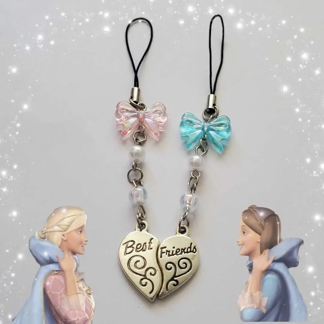 🎀Preciosos phone strap para compartir con tu mejor amiga o amigo, inpirados en Barbie: La princesa y la plebeya💖