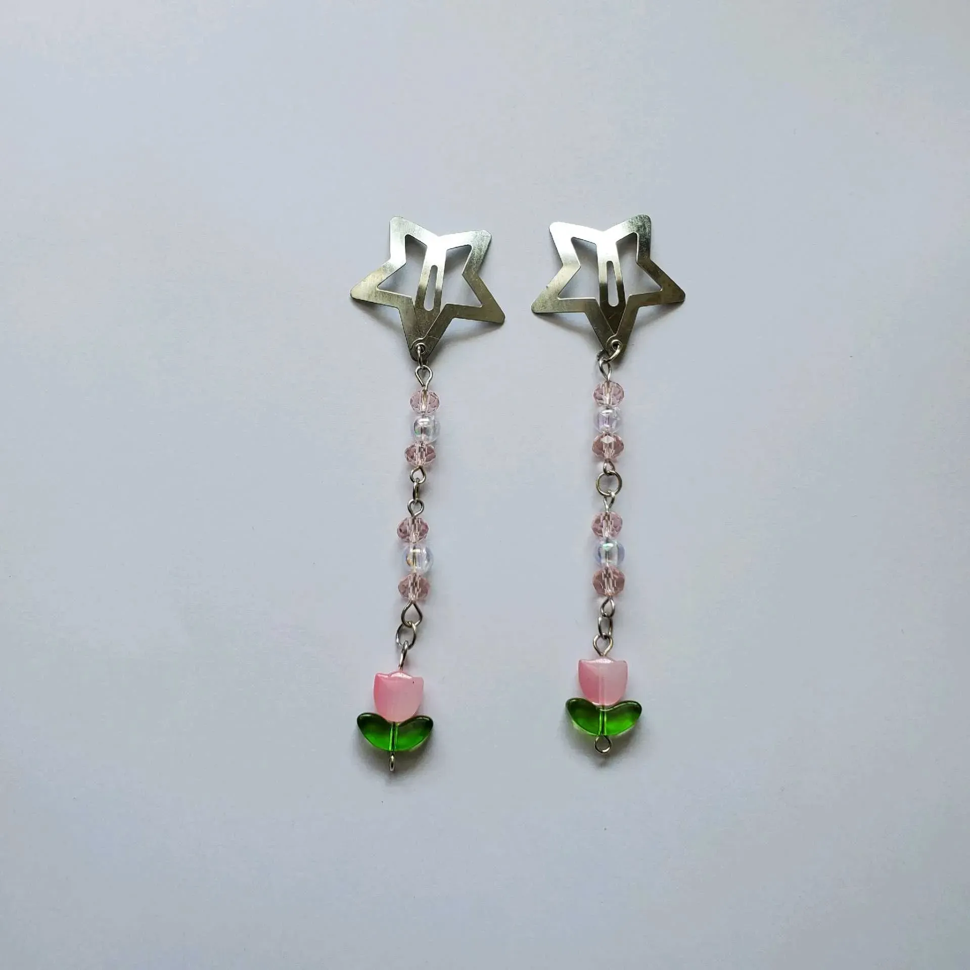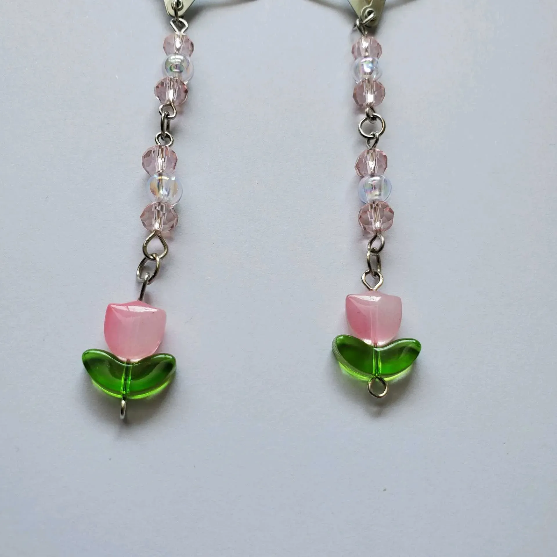 ✨️Preciosos pinches de tulipán🌷, contienen perlas blancas con piedras rosas clarito combinados con un dije de tulipán creando un accesorio único y realmente hermoso💗