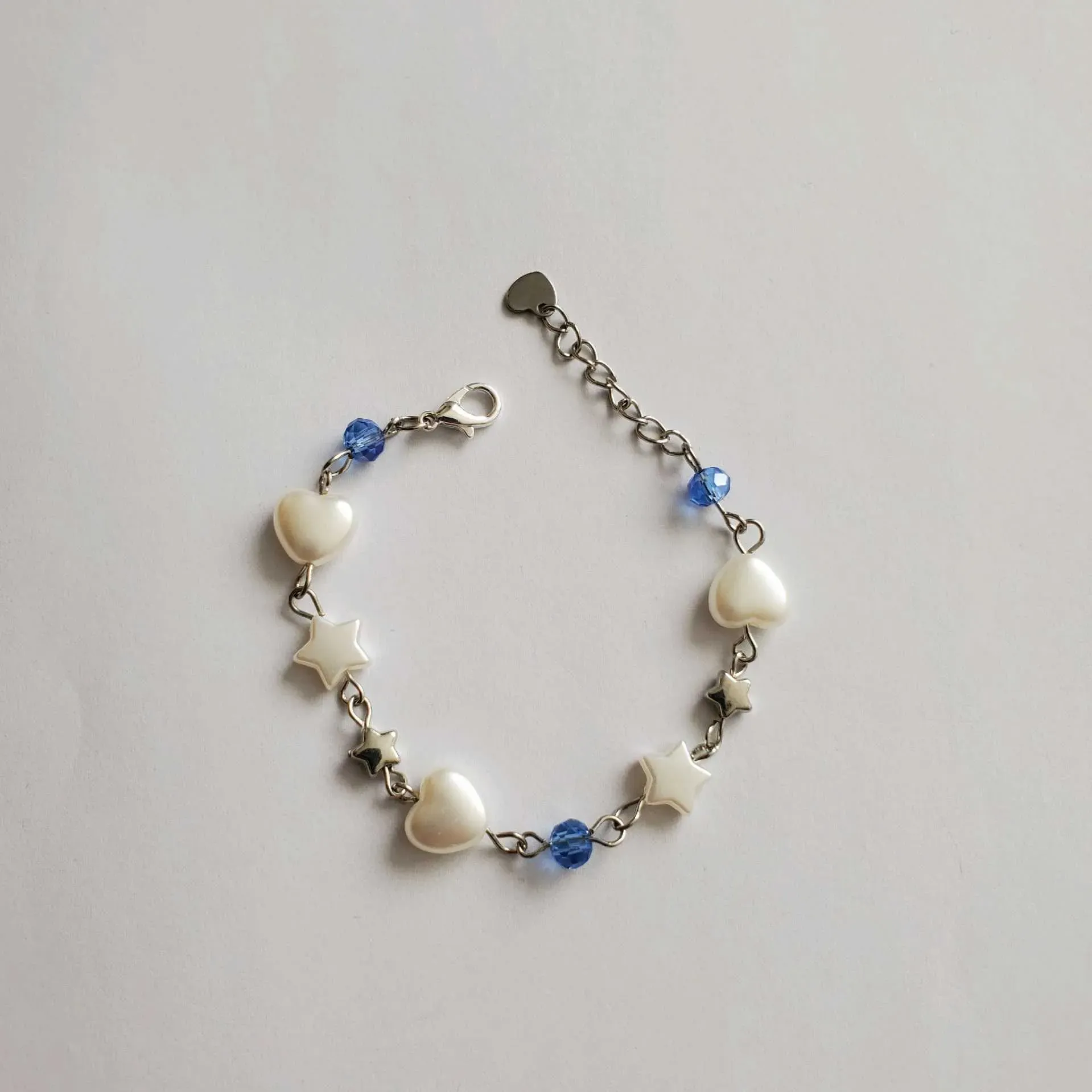 🏹Preciosa pulsera con corazón y perlas en tono celeste, luce realmente hermosa💙.